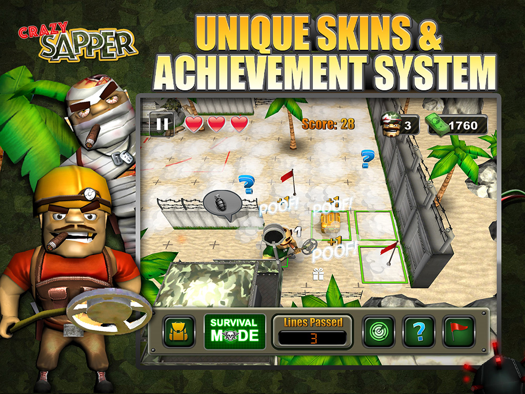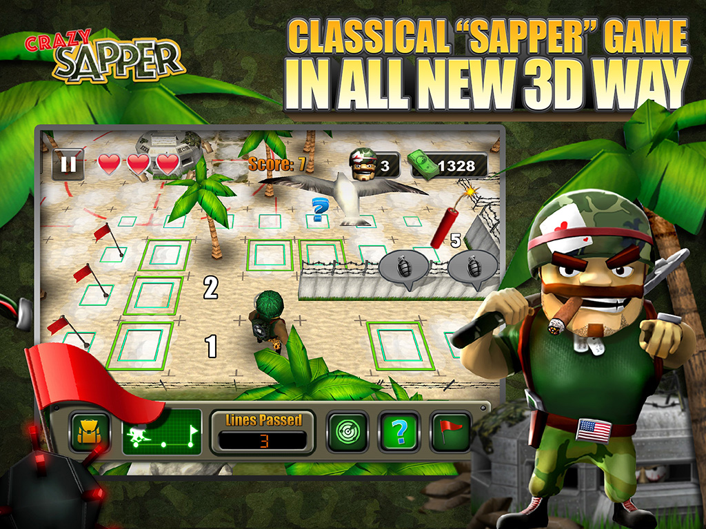 You’ll need to use your wits and solve a variety brain-bending logic puzzles to help Max avoid threats and dangers, including: swamps, gas clouds, aircrafting, machine gunners in bunkers, and of course, dozens of deadly hidden mines.